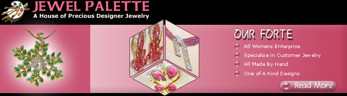 A designer for new ideas, a gemologist for an accurate choice of stones, a team of trained and devoted manufacturers, a network for accurate market information and an excellent customer service are the main ingredients of JEWEL PALETTE. The Team of Jewel Palette comprises of fresh women enterpreneurs Uma Bordia, Anima Bordia and Samta Baid. While Anima and Uma handle manufacturing, Samta is the designer behind the creativity of Jewel Palette.